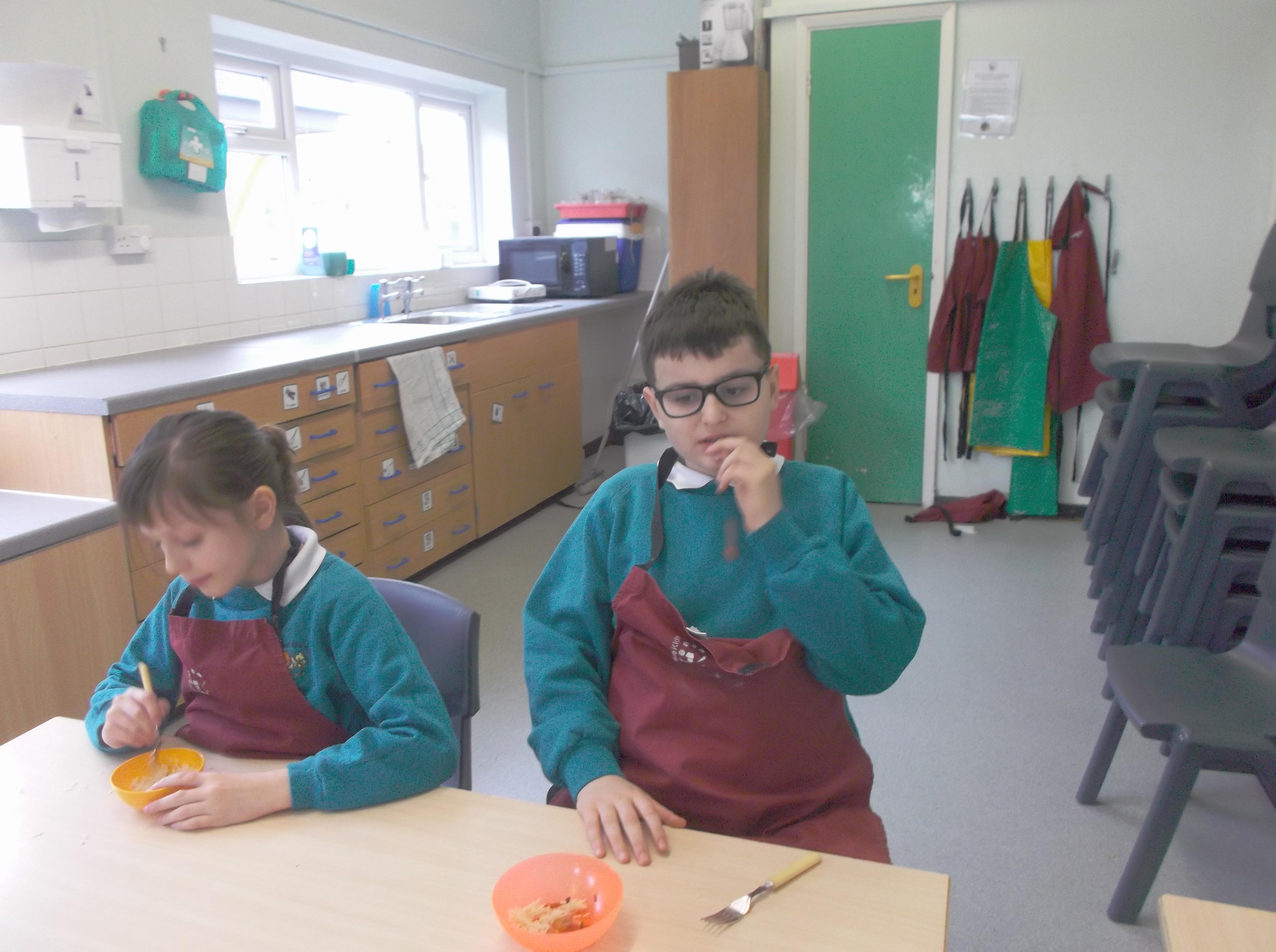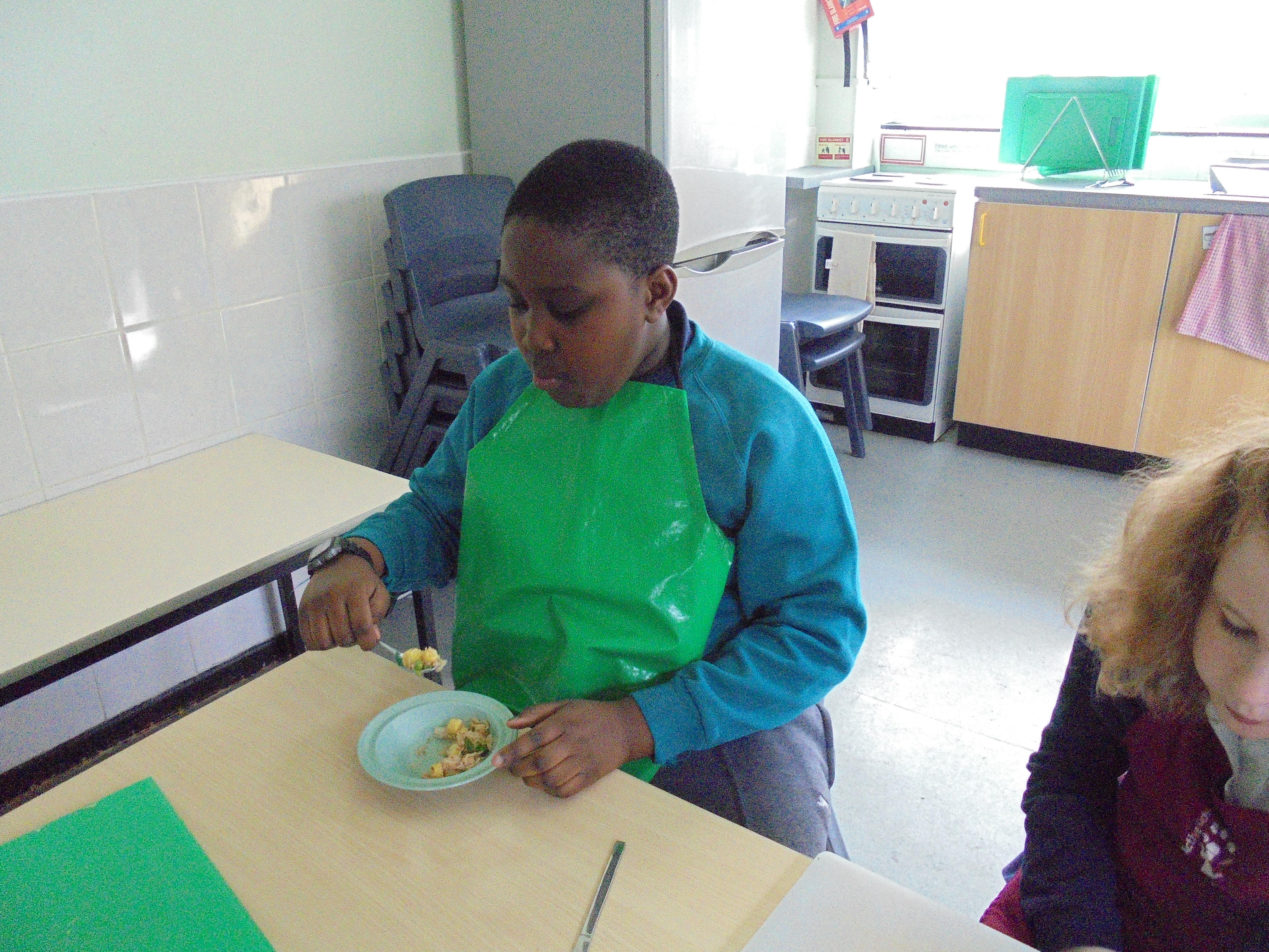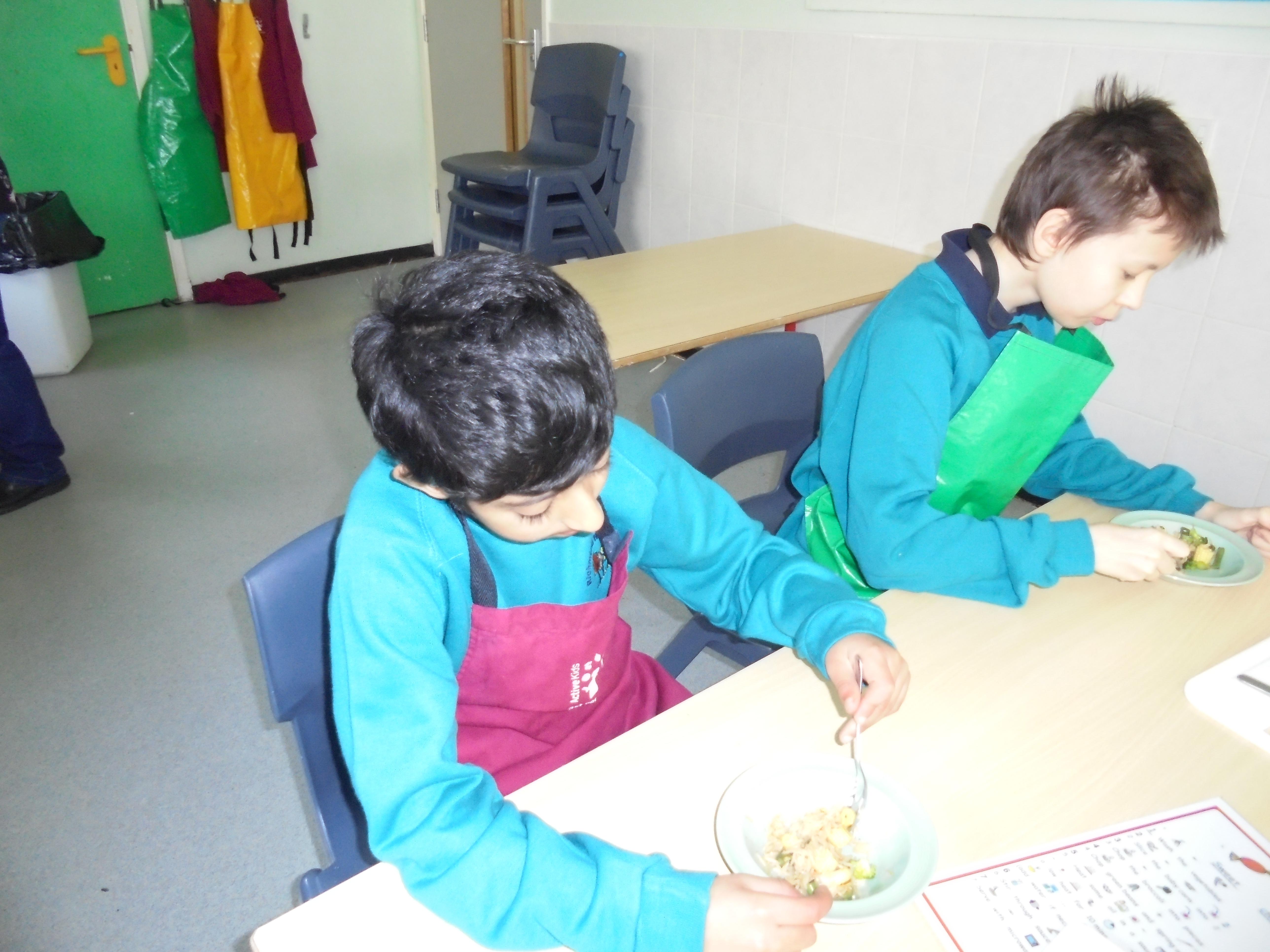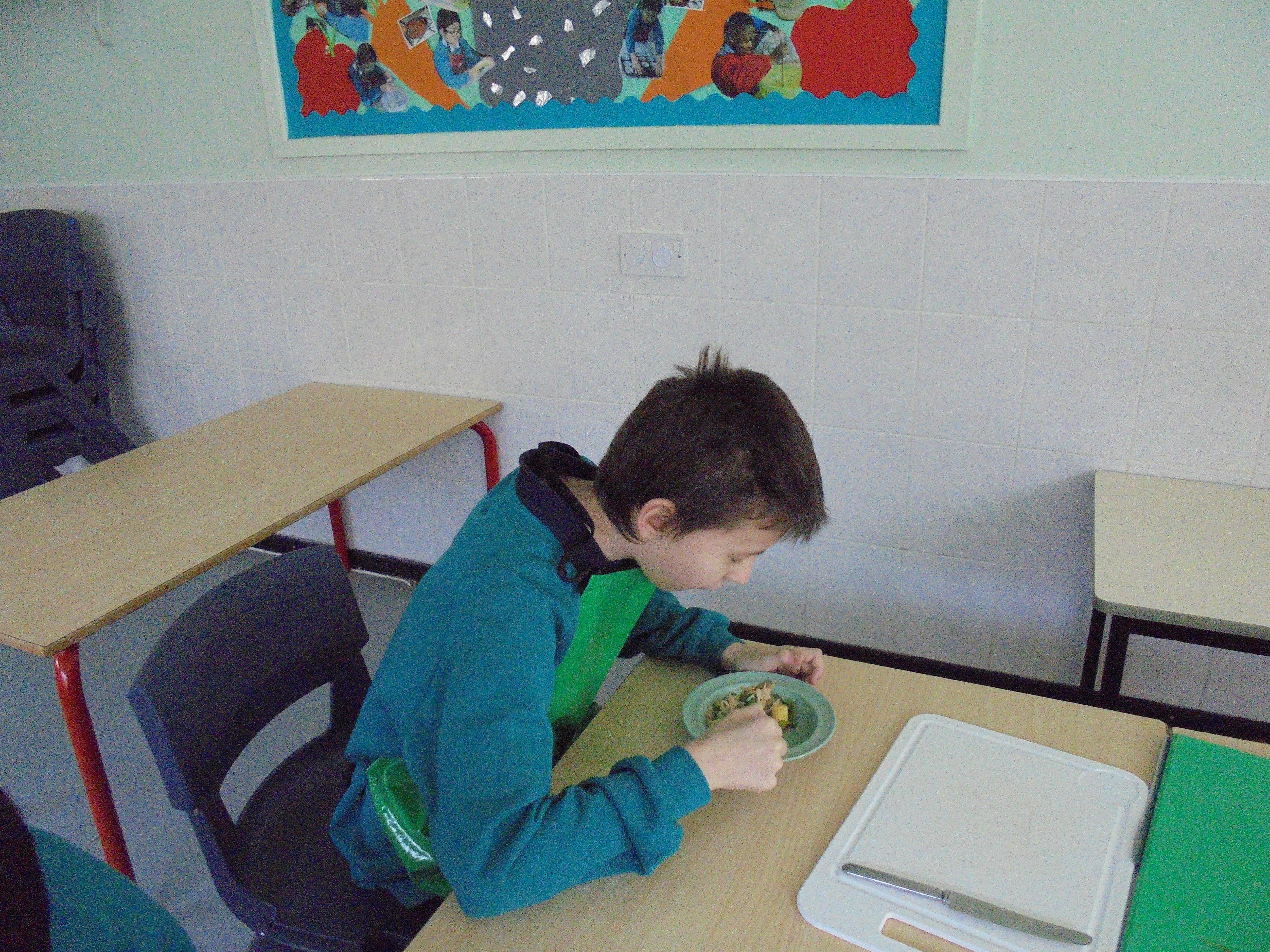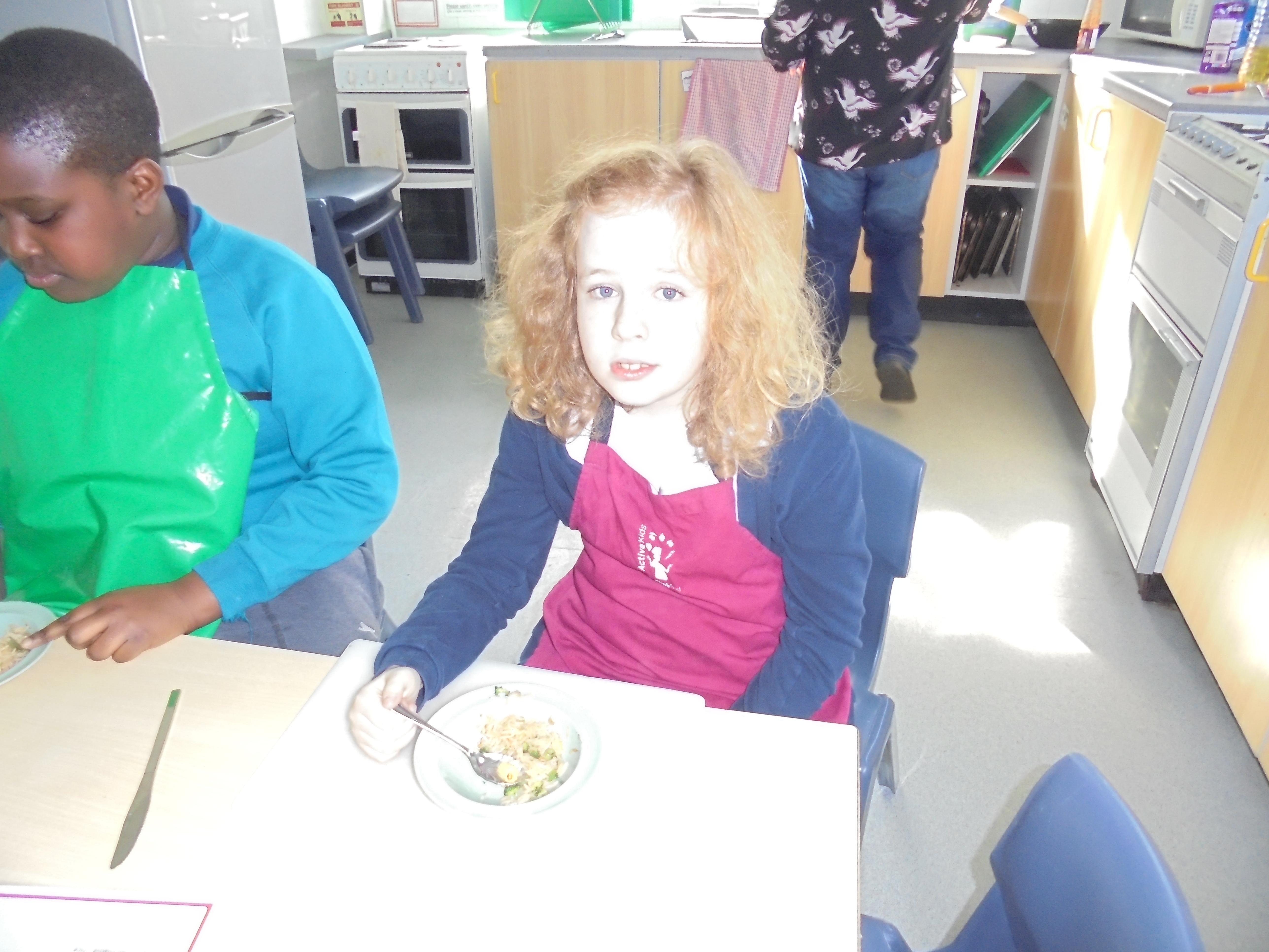 In Cookery the children have been making stir-fries. Here are some photographs of them tasting some of them.