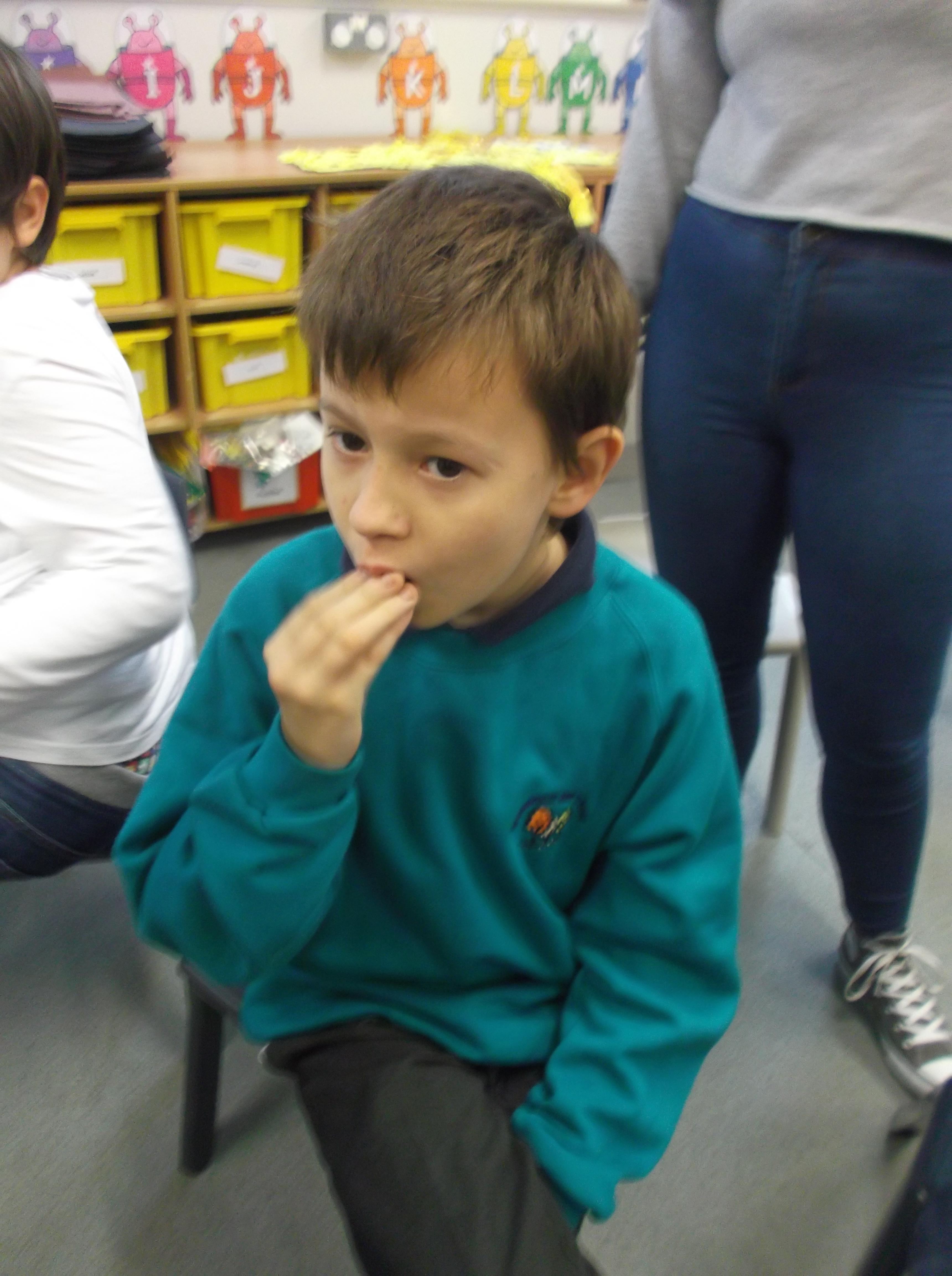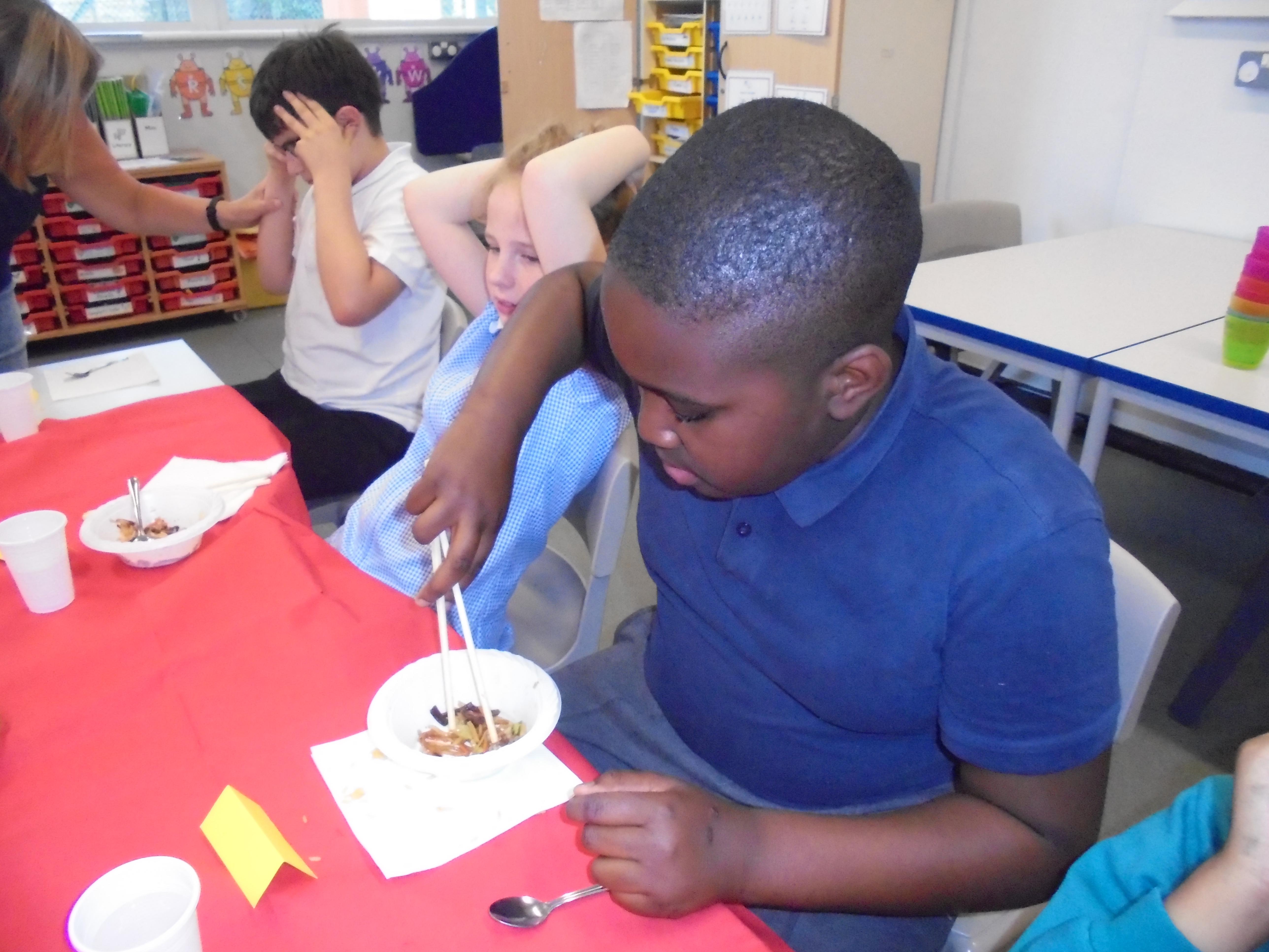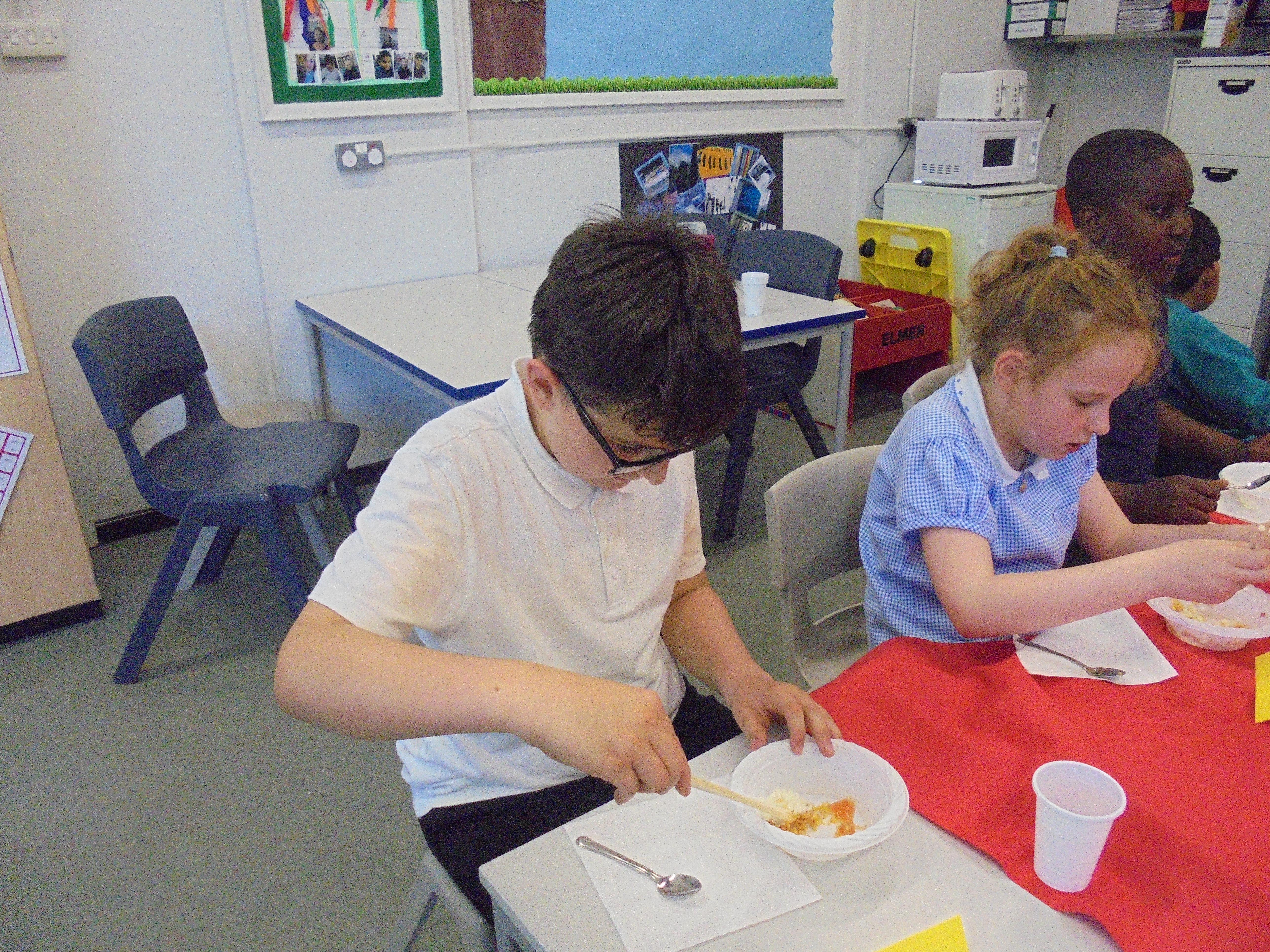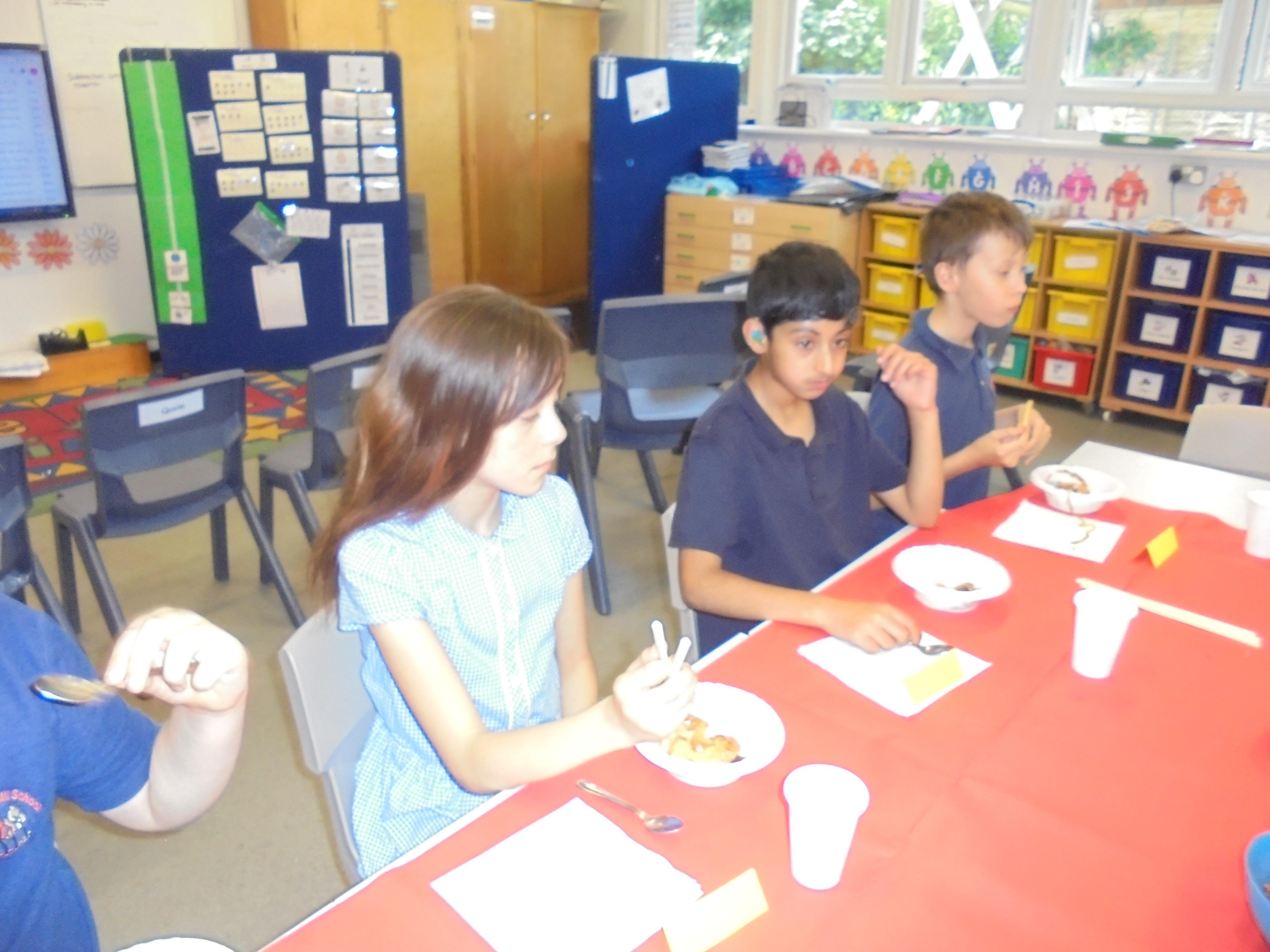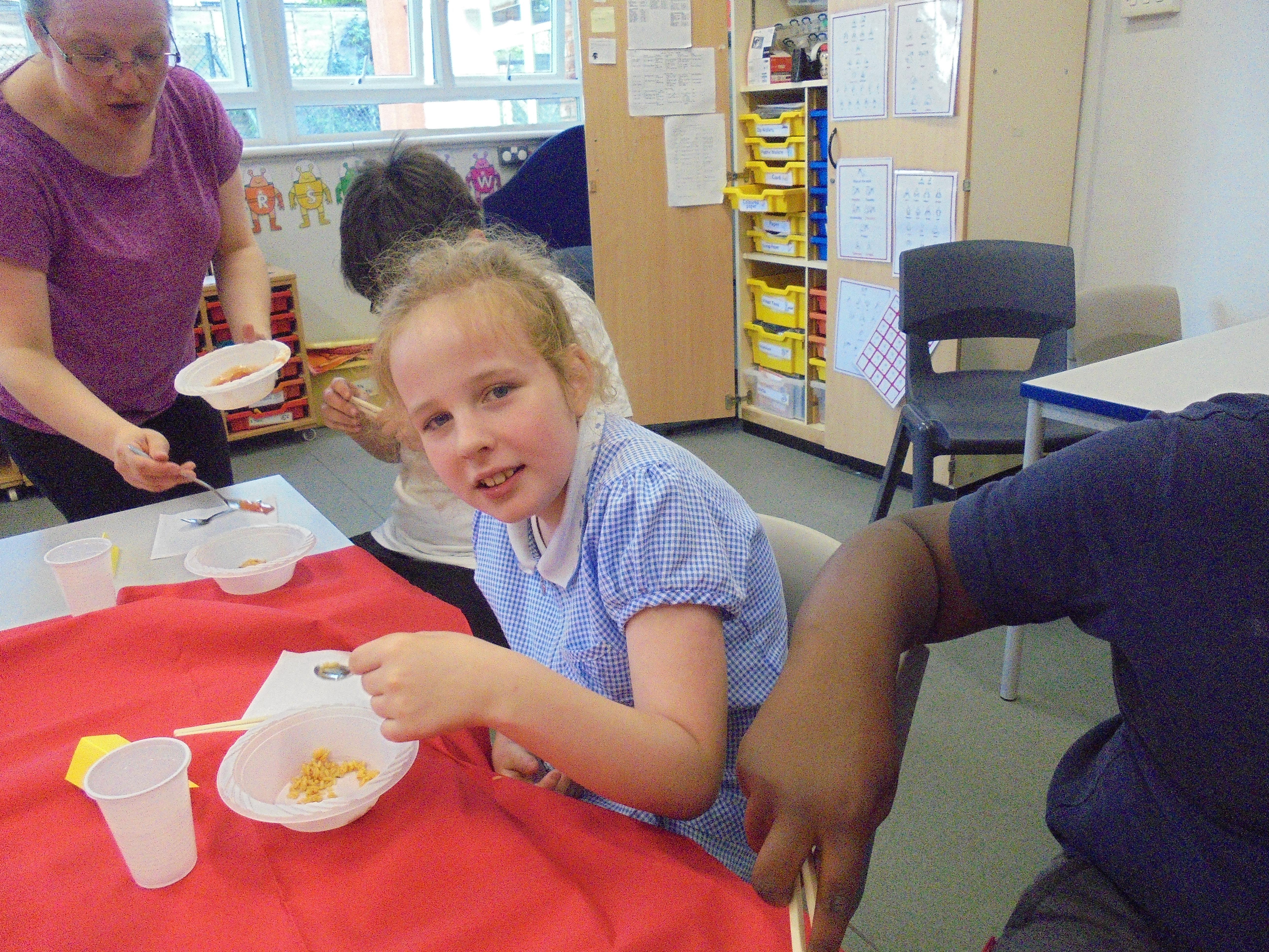 In Cookery the children have been making stir-fries. Here are some photographs of them tasting some of them.