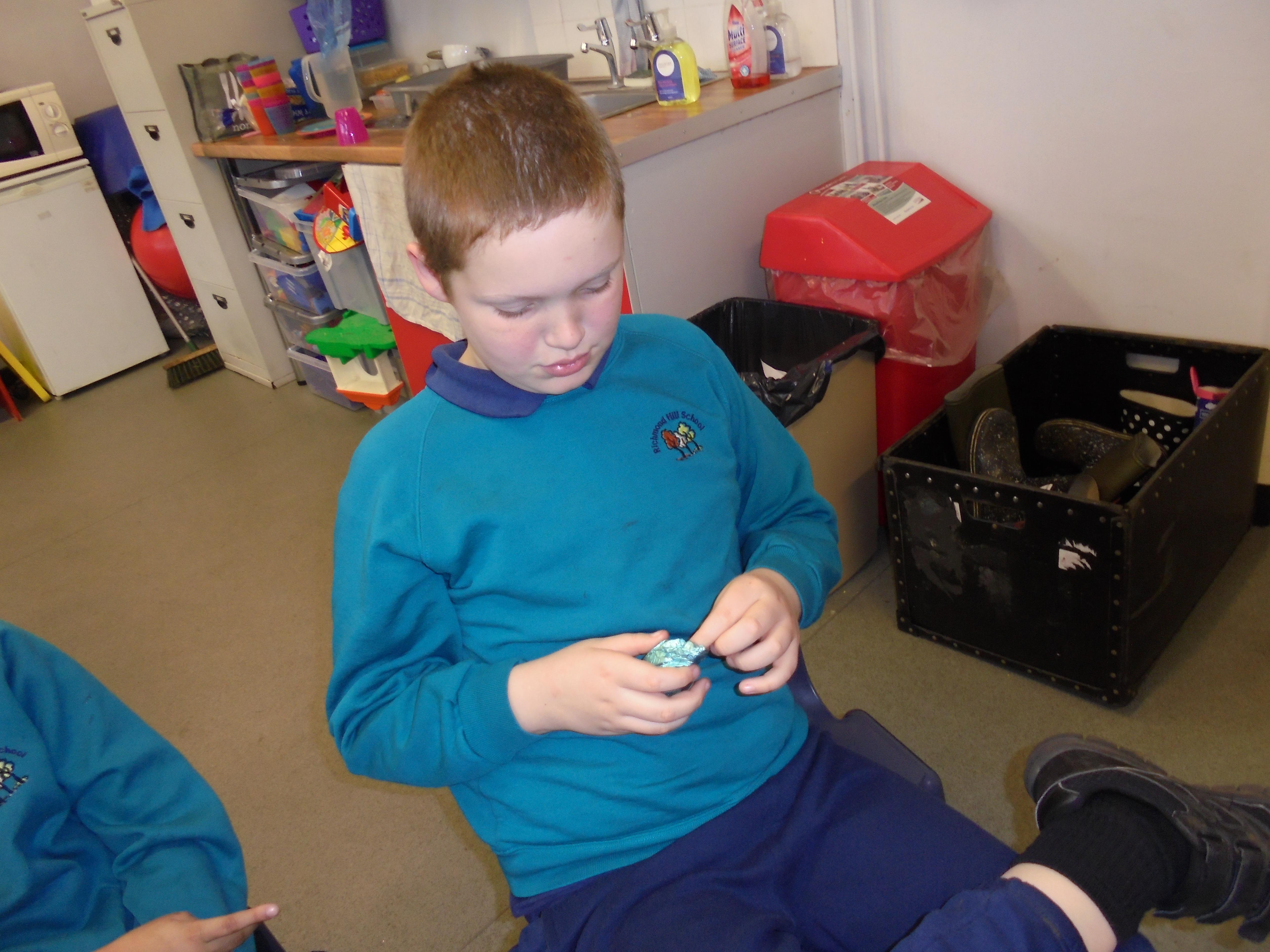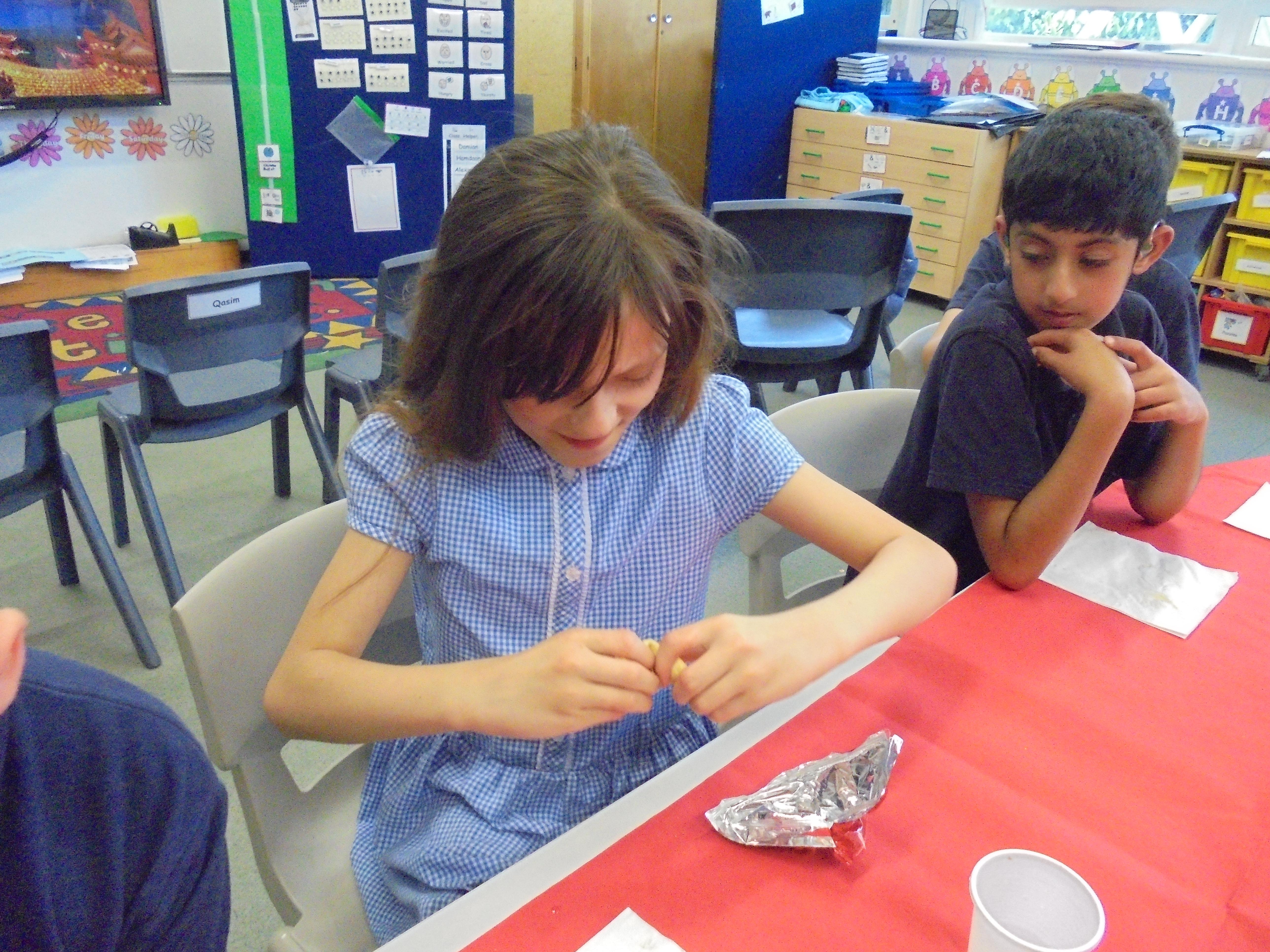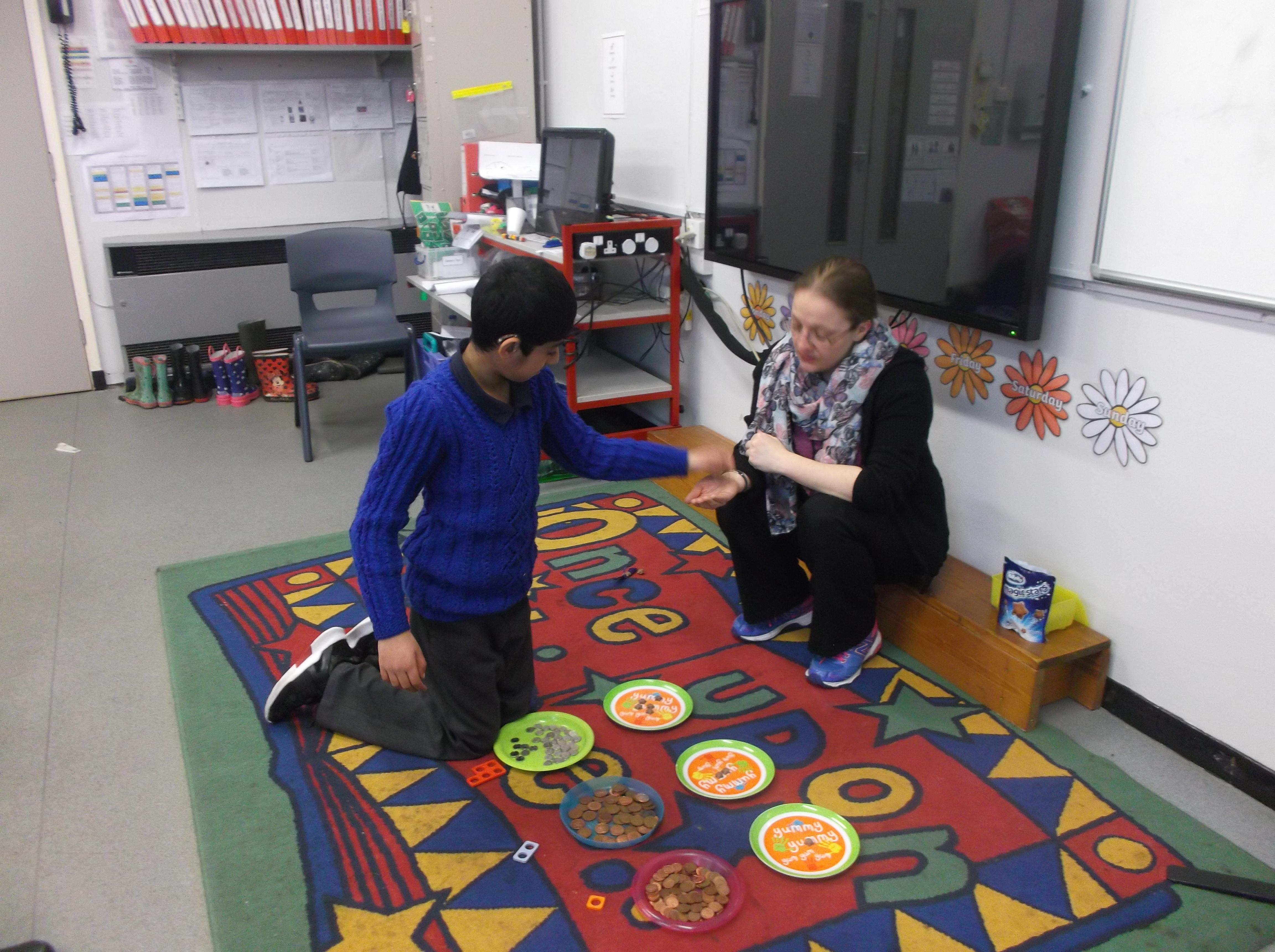 As part of our Mathematics work the children use 1p, 2p and 5p coins to buy sweet treats. The children remembered which coins to give to buy the most chocolate!