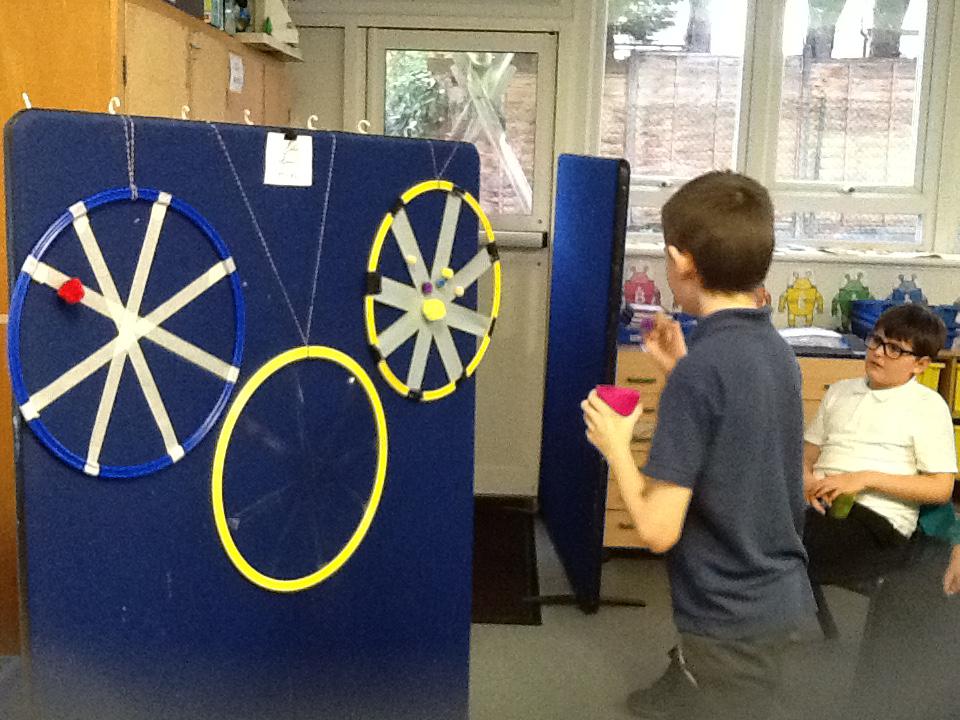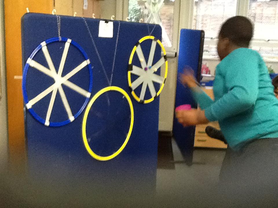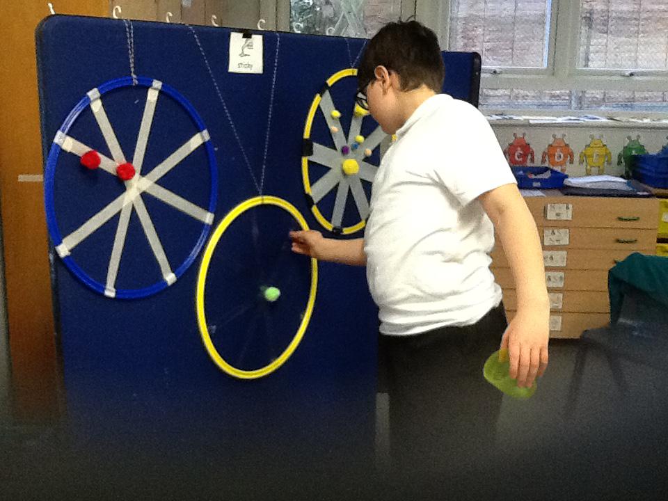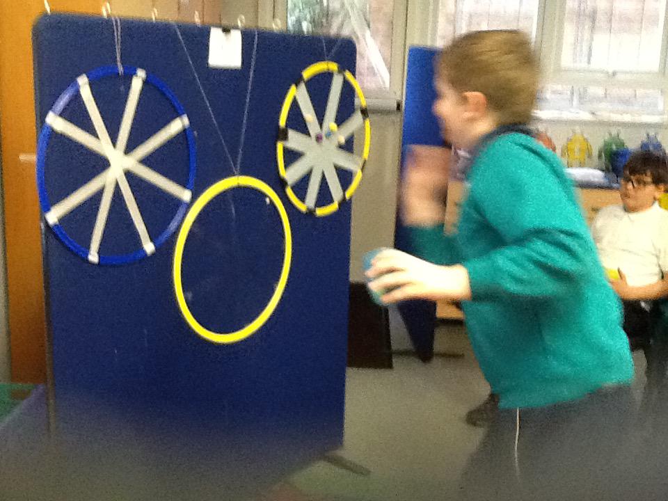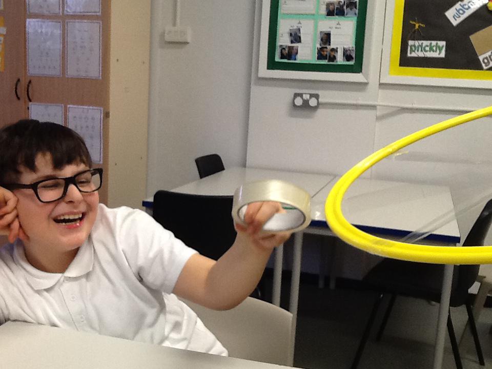 As part of our topic 'Talking Textures' we have been exploring different sticky tapes. We used three different types: sellotape, masking tape and duct tape. We made three web-like targets and threw pom poms to find out which was the stickiest.
