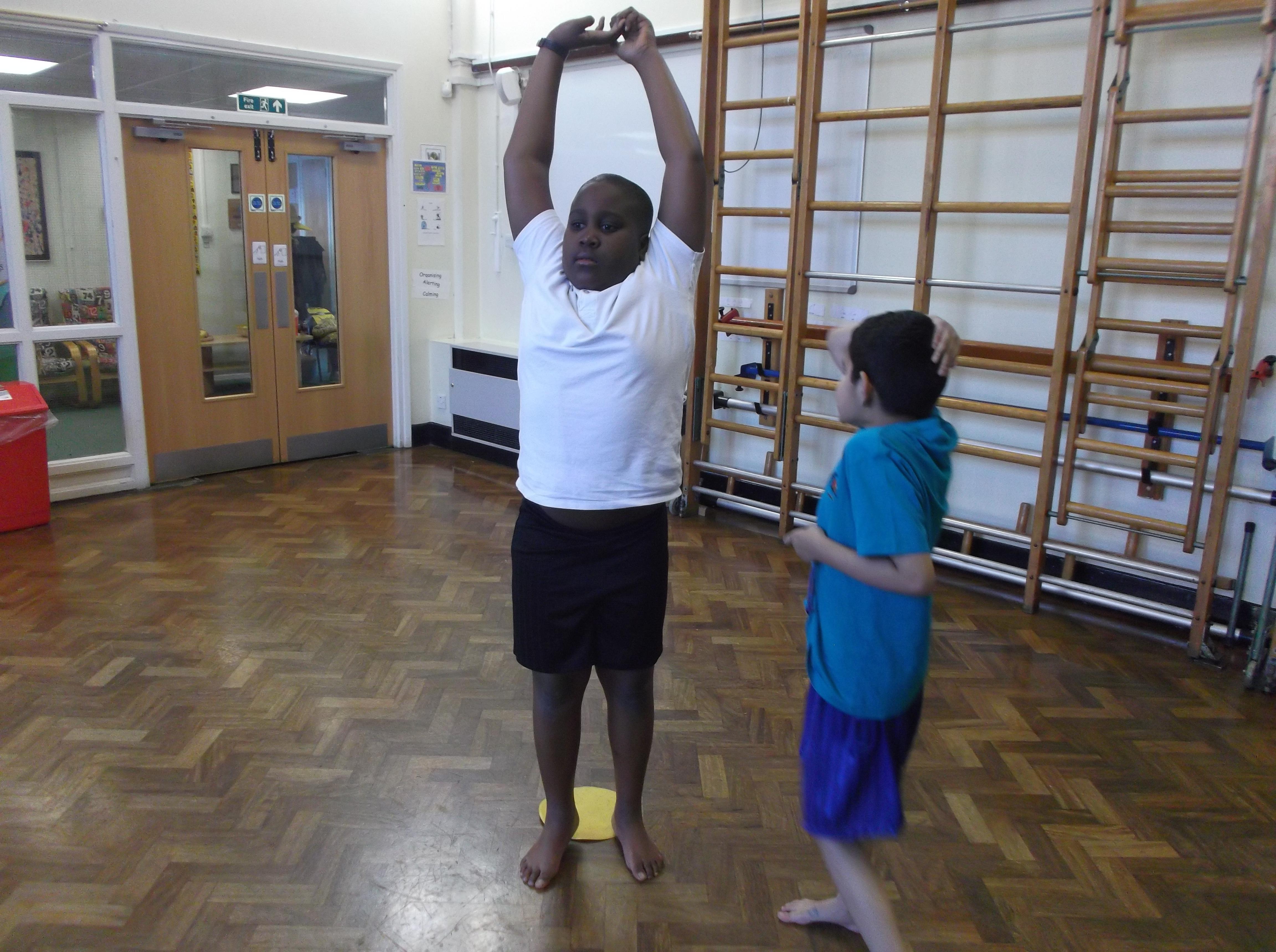 We have been working hard developing our gymnastic skills. We have made stretched shapes, tall shapes, small shapes and travelled in different ways. Look at some of our work.