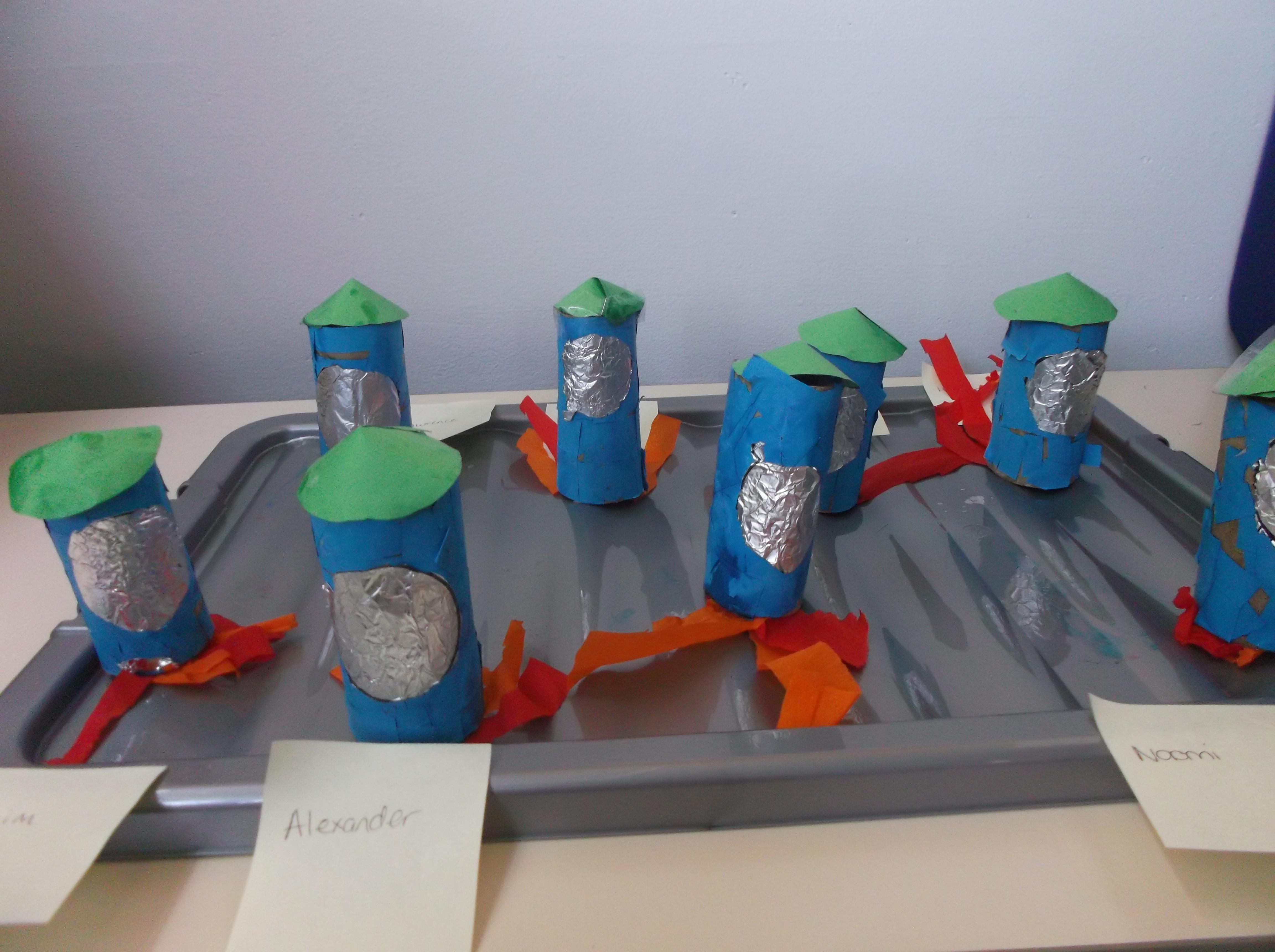 In Yellow Class we have been exploring the solar system. We blasted off and headed into space. We landed on the moon to collect some space rock but it was difficult walking on the moon and we had to wear space suits. We then stopped for a snack in space. We ate freeze dried ice cream and drank our space drink from a special bag. We have ventured further exploring how the planets orbit the Sun. We have enjoyed our space adventure.