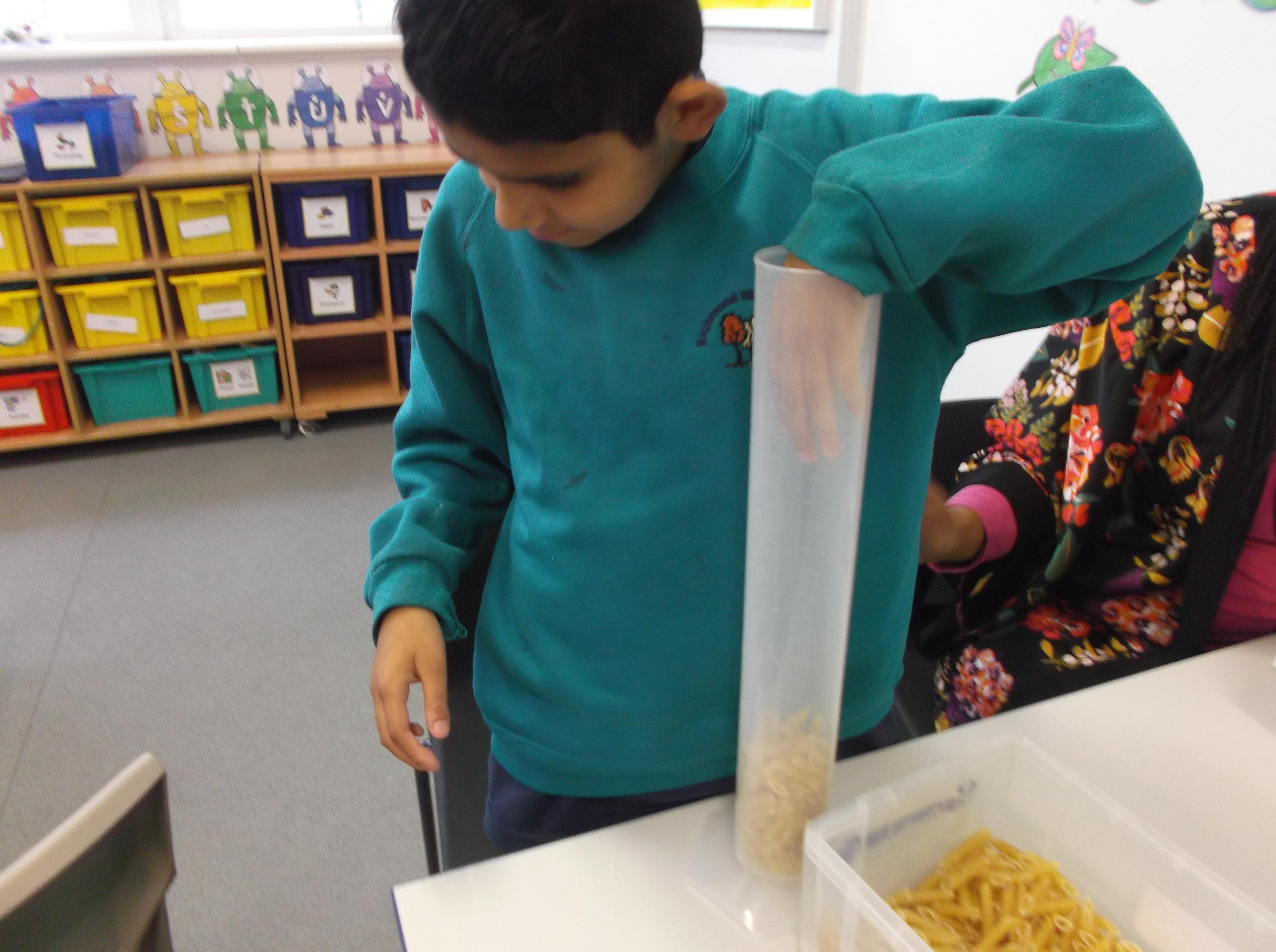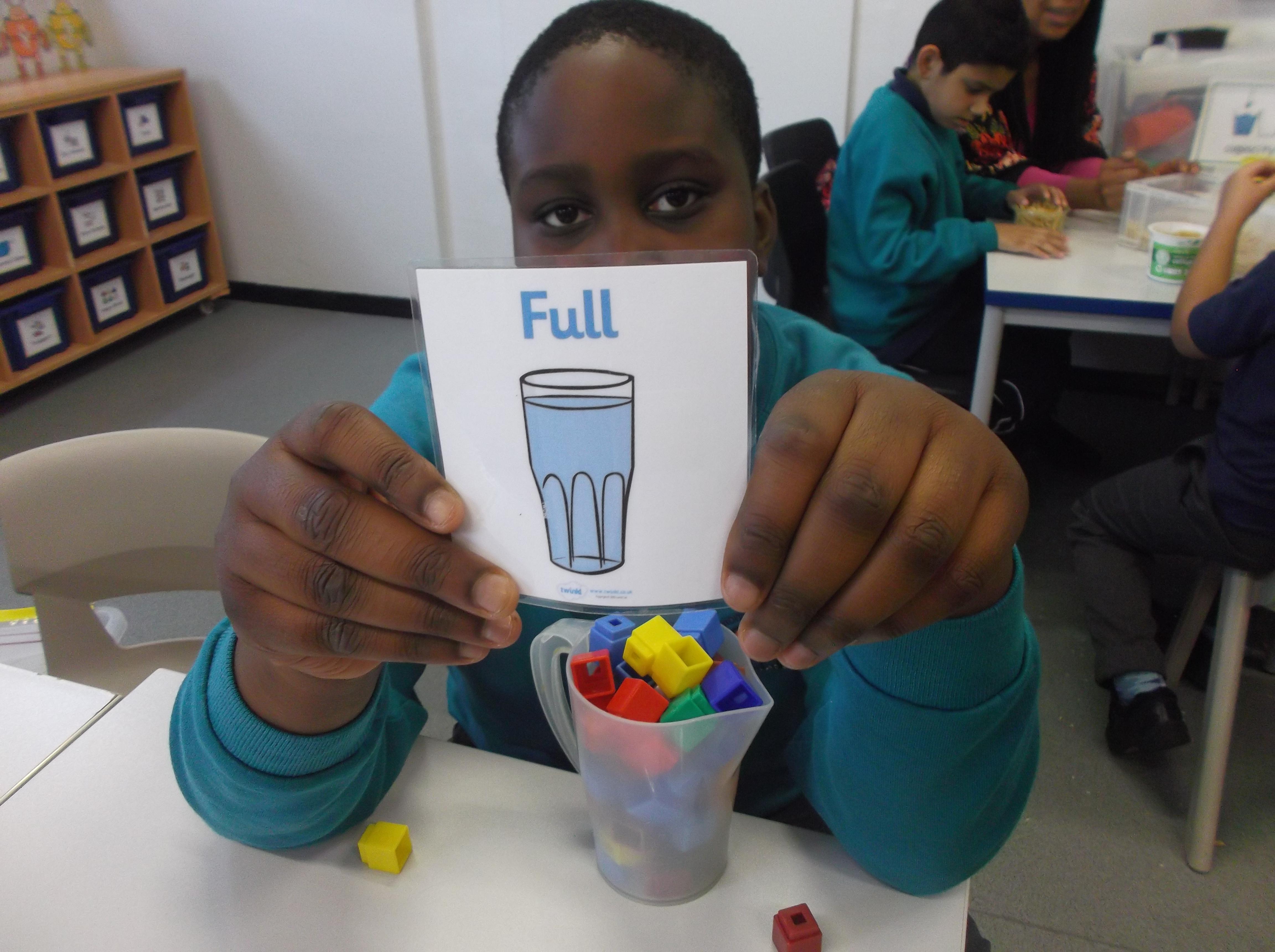 Recently Yellow Class have been exploring capacity. The children used a range of contains and water, Maths blocks, pasta and rice to fill them. The children are more familiar with the terms: full, empty, half full, nearly full and nearly empty.
