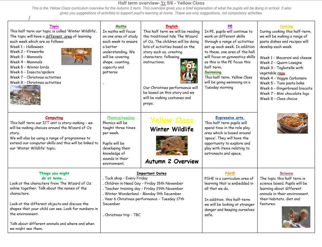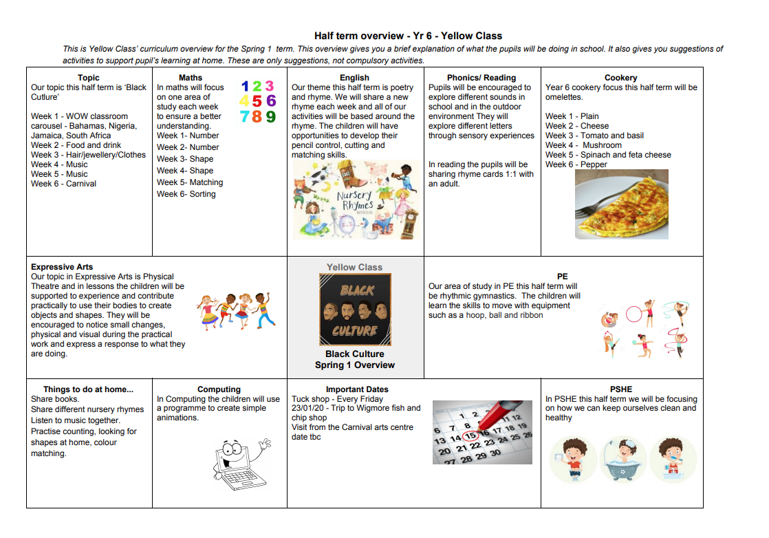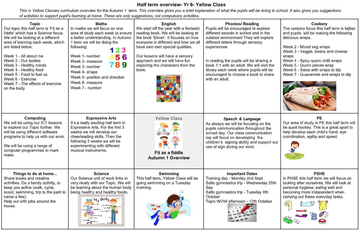 Below is the curriculum overview for Yellow Class this half term, please take a look.